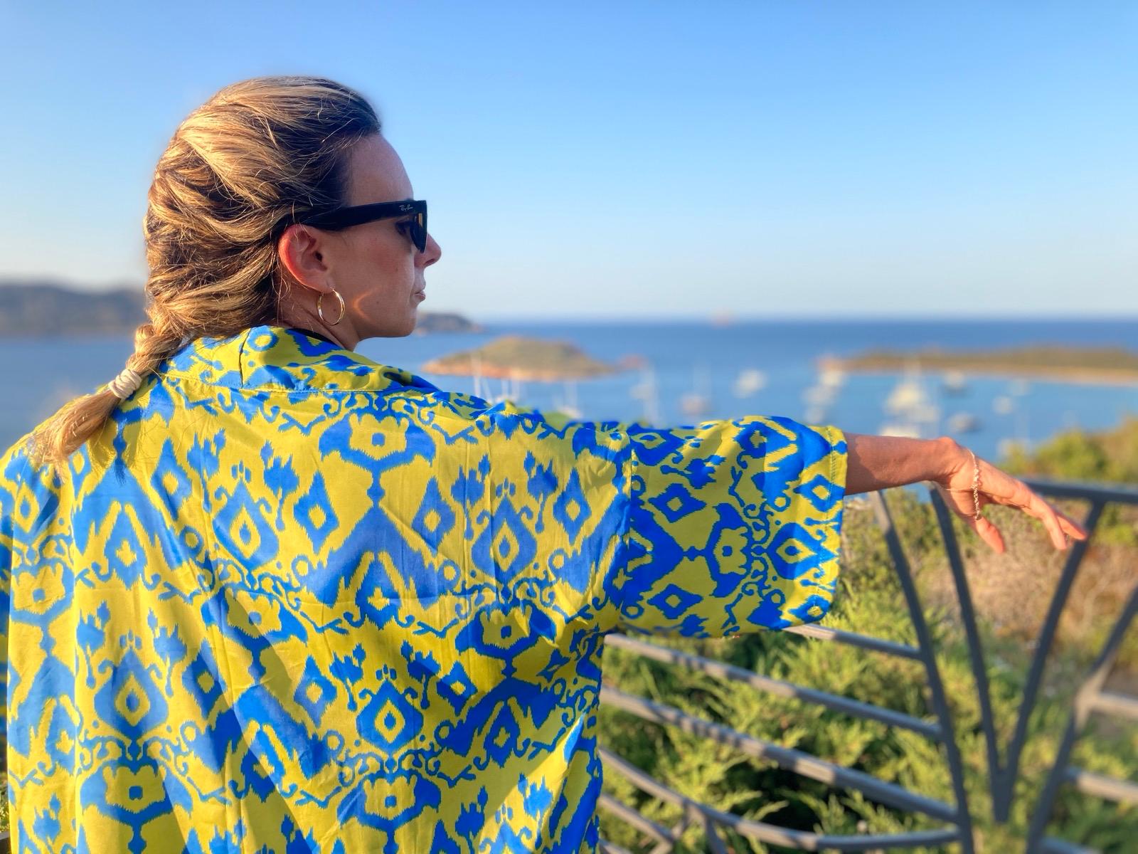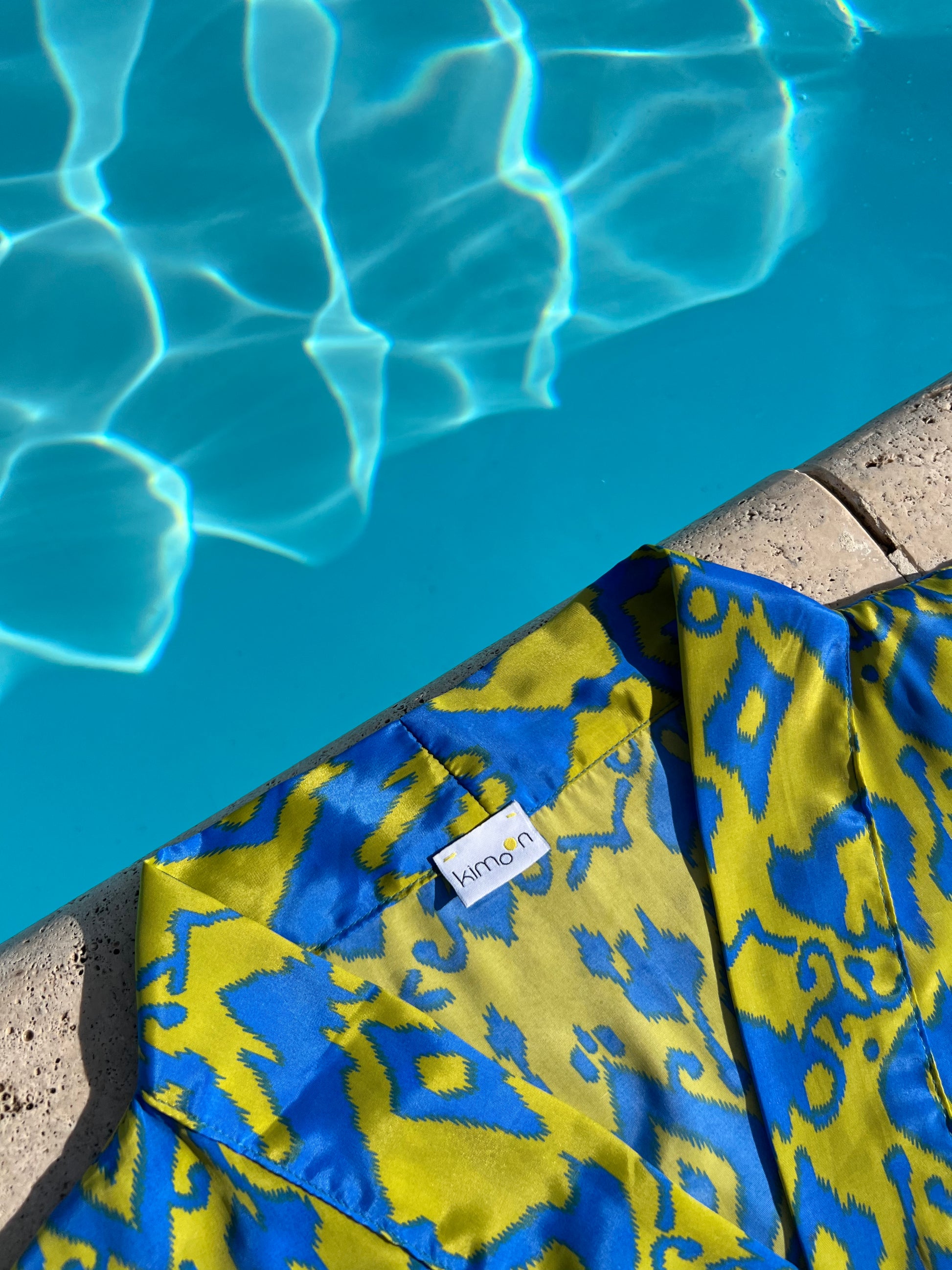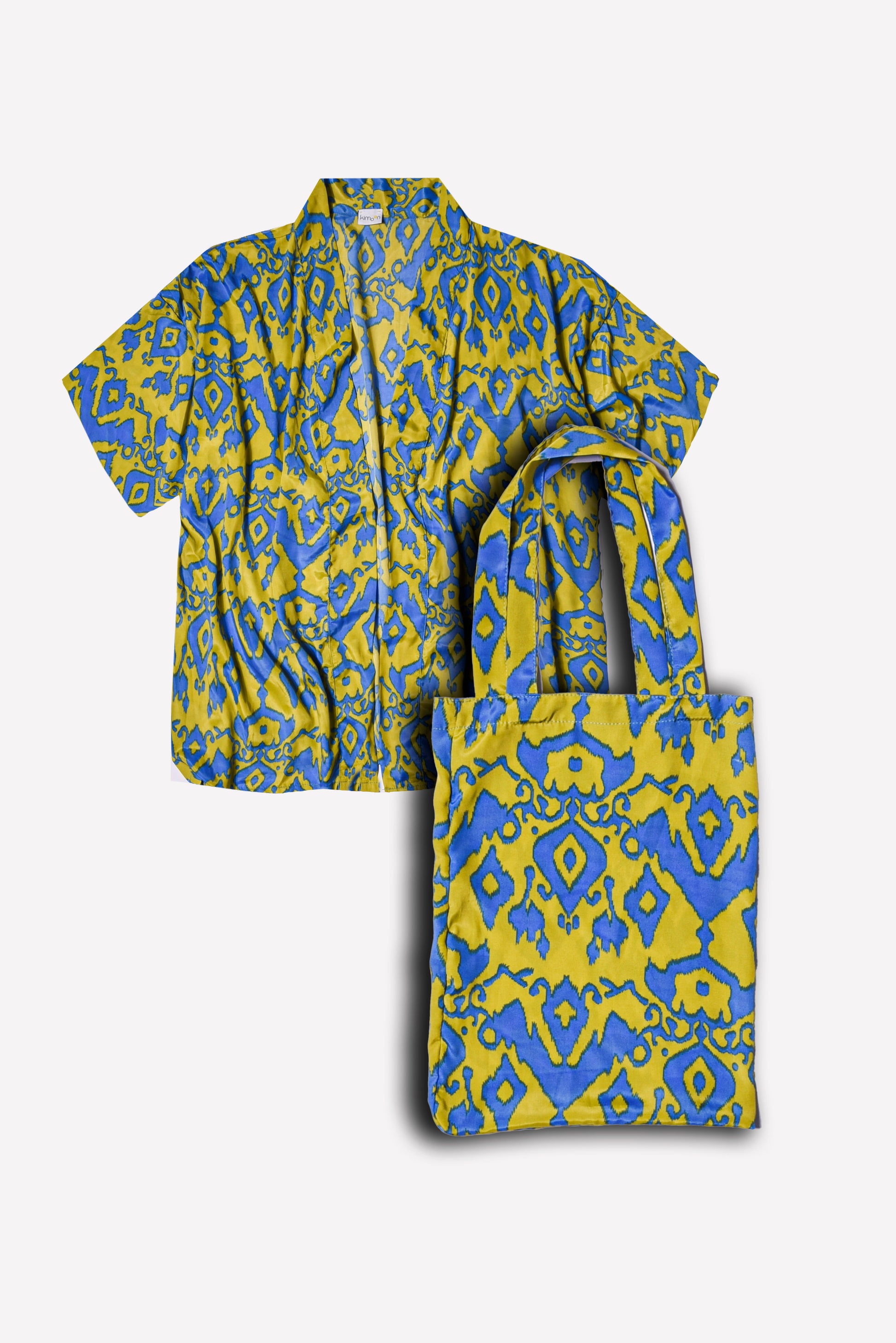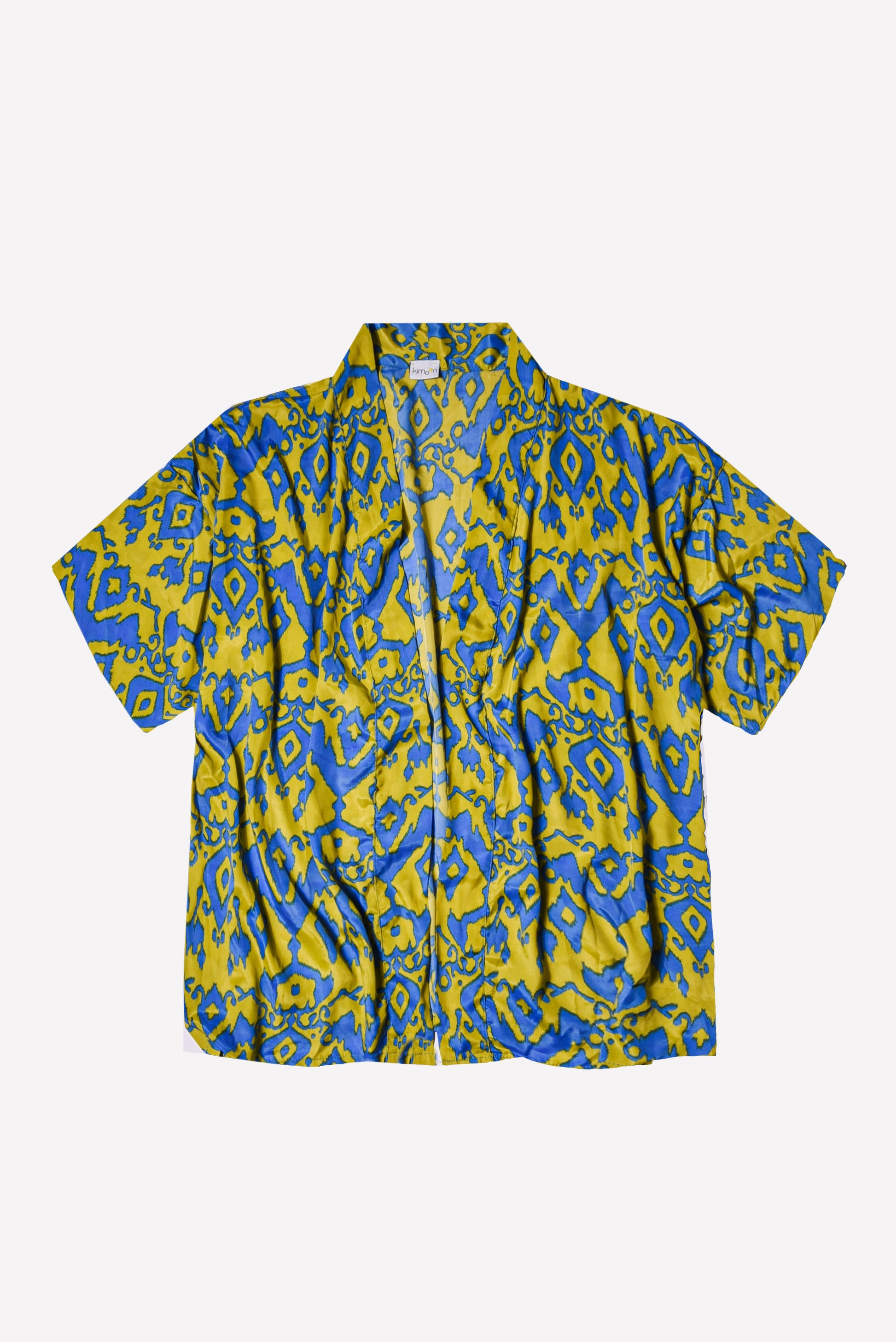 Aggiungi un tocco di vivacità e comfort al tuo guardaroba con questo kimono a manica corta oversize, perfetto per completare un look minimal, oppure per aggiungere un accento sofisticato ai tuoi outfit quotidiani. Realizzato con materiali pregiati e un packaging che lo rende perfetto anche come idea regalo, ogni kimono viene fornito con una borsetta abbinata nello stesso tessuto e fantasia, per un tocco di stile extra e una scelta ecologica.