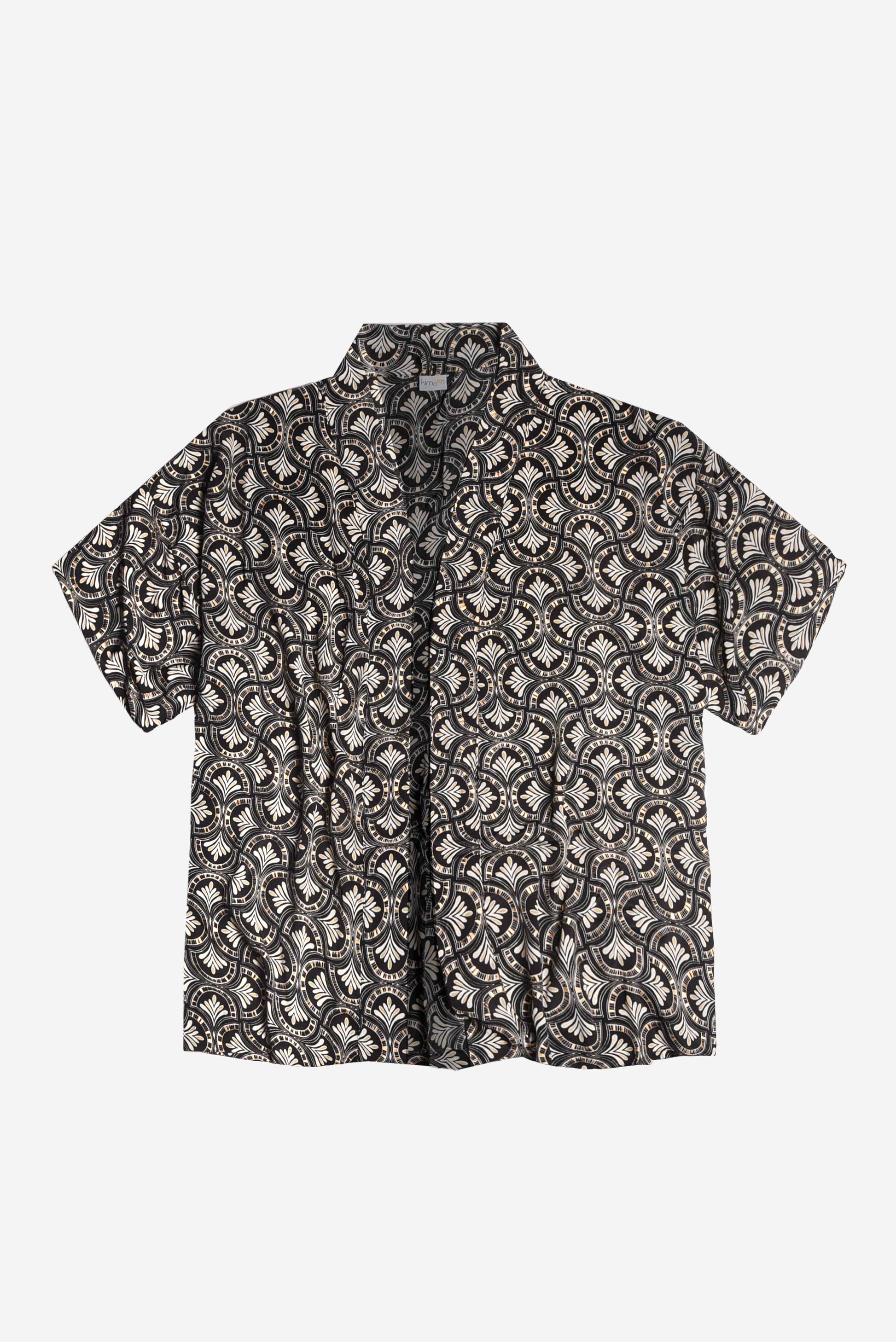 Design: Motivo decorativo stilizzato che ricorda delle mini conchiglie su base nera.