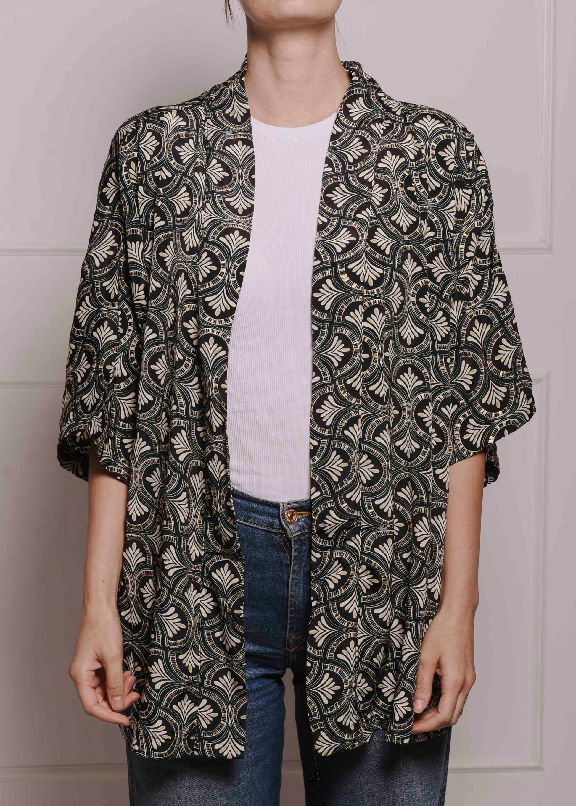Packaging: Viene fornito con una borsetta realizzata nello stesso tessuto del kimono, pratica e abbinata, per un tocco di eleganza in più oltre che per una scelta consapevole ed ecologica, evitando così l’uso inutile di buste in plastica.
