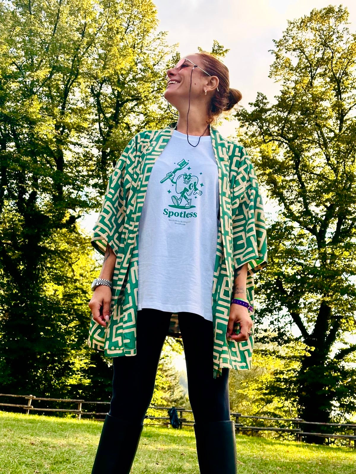 Aggiungi un tocco di vivacità e comfort al tuo guardaroba con questo kimono a manica corta oversize, perfetto per completare un look minimal, oppure per aggiungere un accento sofisticato ai tuoi outfit quotidiani. Realizzato con materiali pregiati e un packaging che lo rende perfetto anche come idea regalo, è un capo indispensabile per chi ama distinguersi. Viene fornito con una borsetta realizzata nello stesso tessuto e fantasia del kimono, perfetta da riutilizzare con stile.