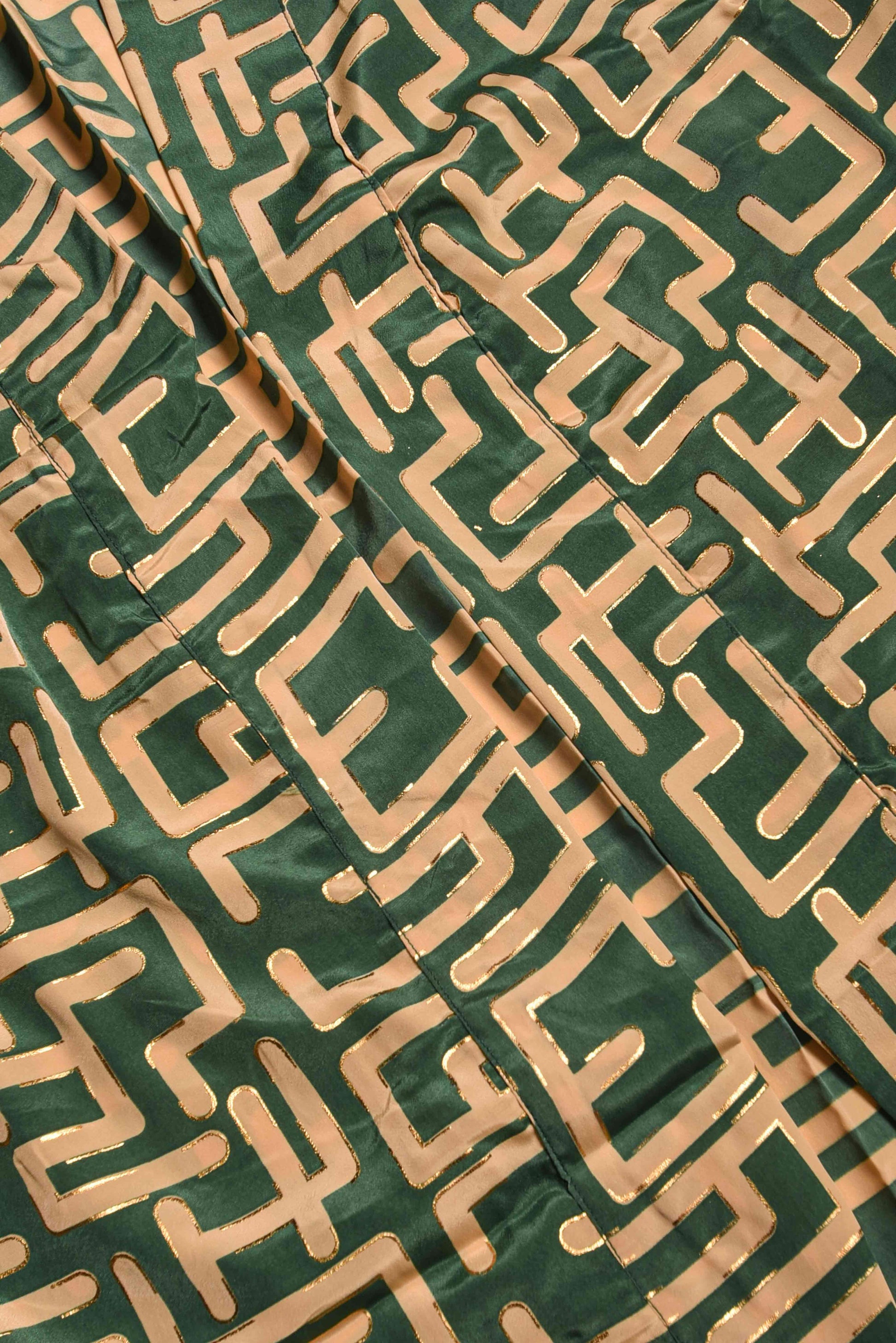 Design: Motivo geometrico elegante in avorio e oro su base verde, per un’estetica sofisticata e contemporanea, perfetta per serate eleganti o da sdrammatizzare con un look più street.